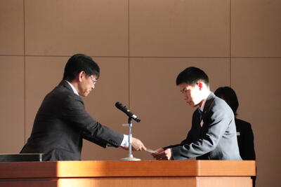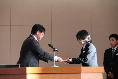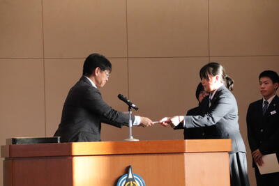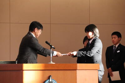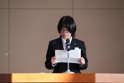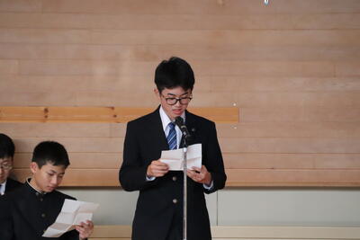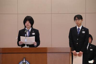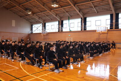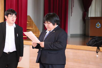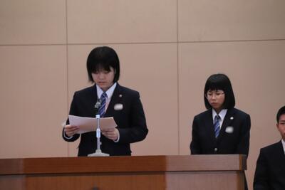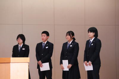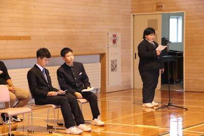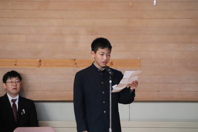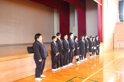 引継ぎ式では、前生徒会長から新生徒会役員へ激励しのメッセージが送られました。