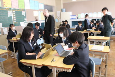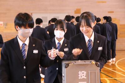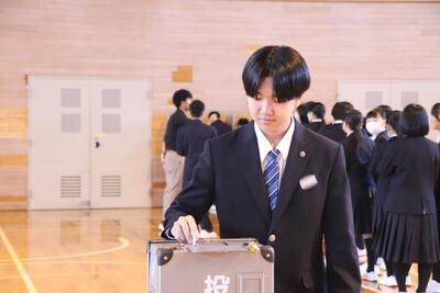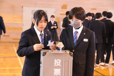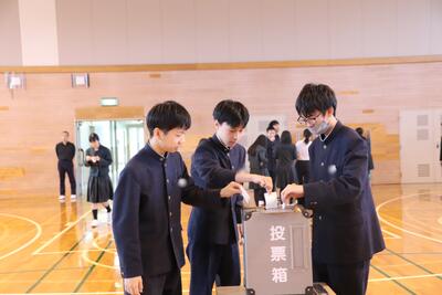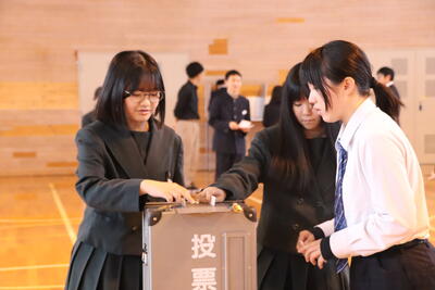 最初に立候補者と責任者がそれぞれ演説し、出席した生徒全員が投票を行いました。