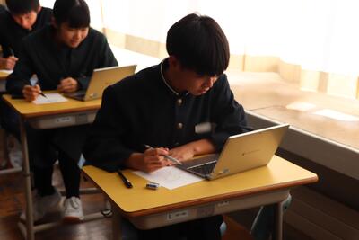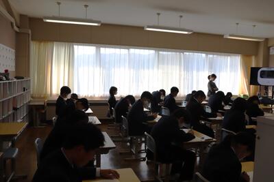 静まり返った教室で、生徒たちは真剣にテストを受けていました。
