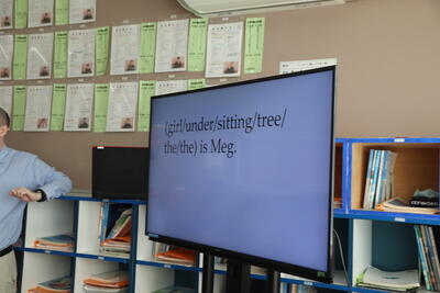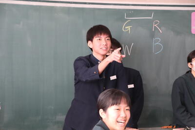 各グループから1人ずつ、英語のクイズに挑戦しました。