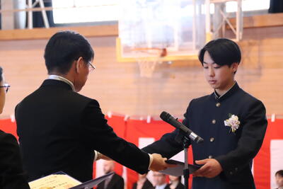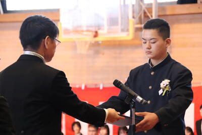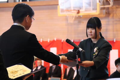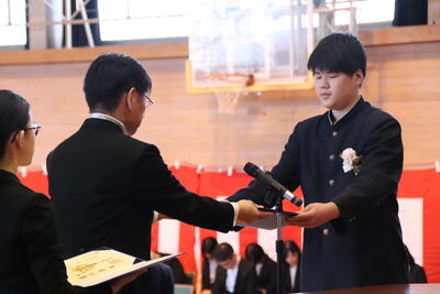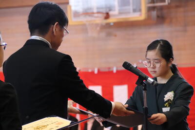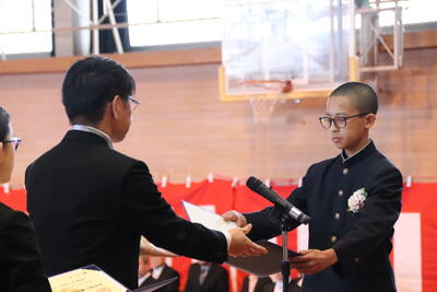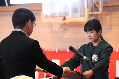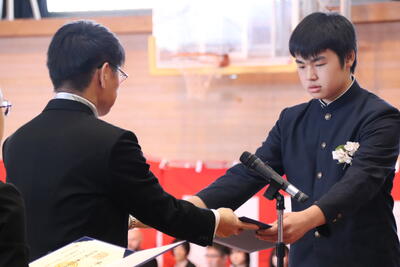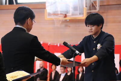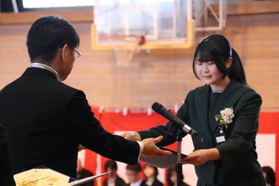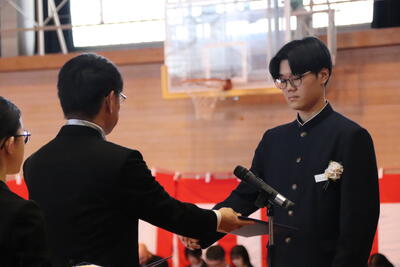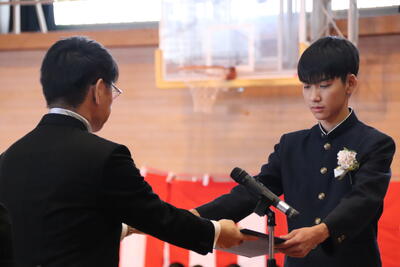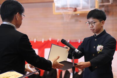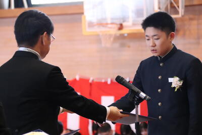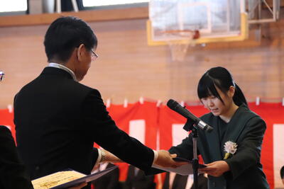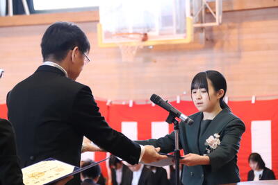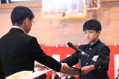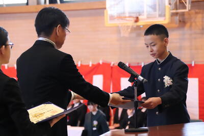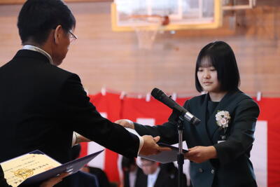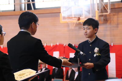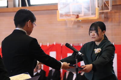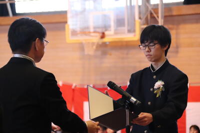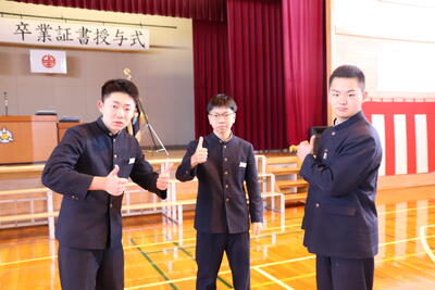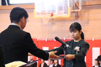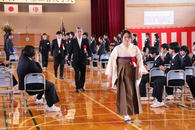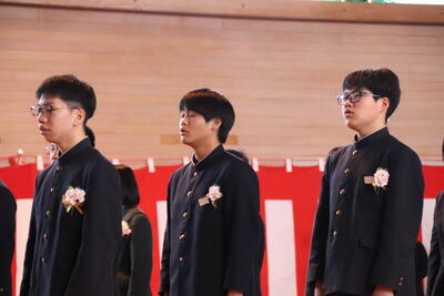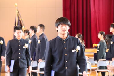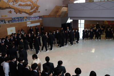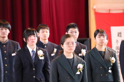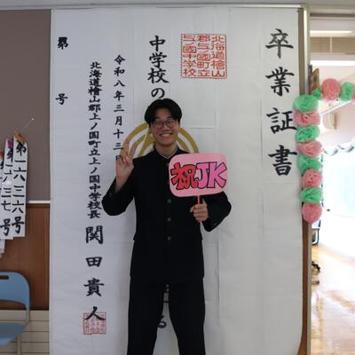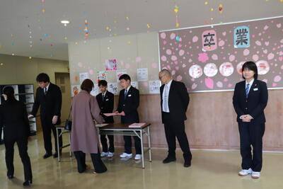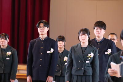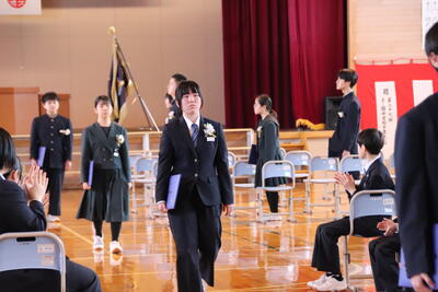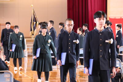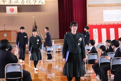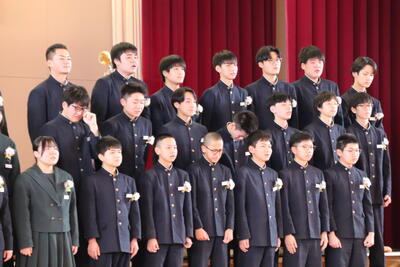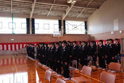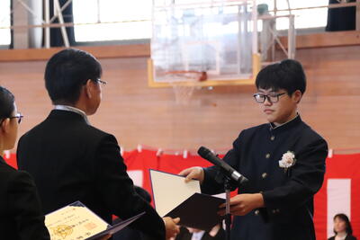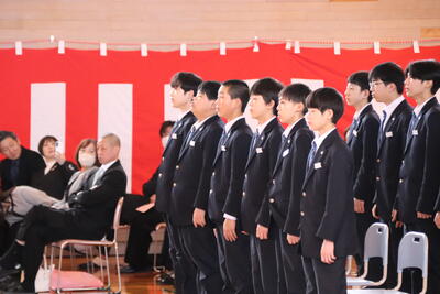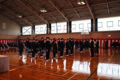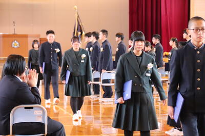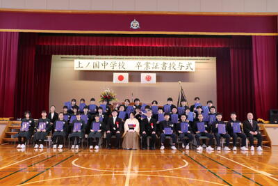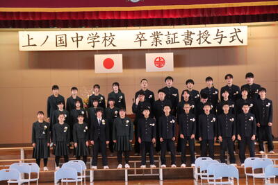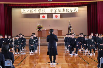 本日卒業式を行い、3年生33名がが上ノ国中学校から巣立ちました。