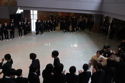 総練習では本番同様の緊張感の中、生徒は集中していました。