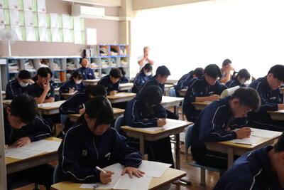 静まり返った教室で、生徒たちは真剣にテストを受けていました。