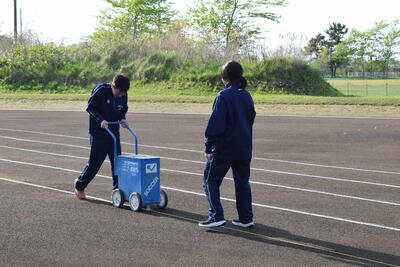フィールド係の生徒自ら準備を行っていました。体育祭に向けて、着々と準備が進んでいます。