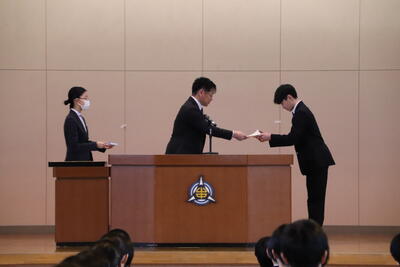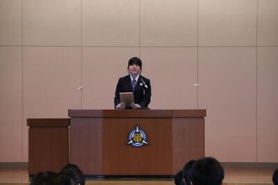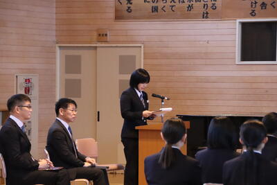 引継ぎ式では、前生徒会長から新生徒会役員へ激励しのメッセージが送られました。