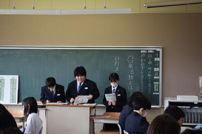 4/28(月)の4時間目、学活の時間で体育祭の紅白の発表や係決めが行われました。