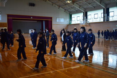 まず3年生がお手本を見せた後、6グループに分かれて練習が始まりました。