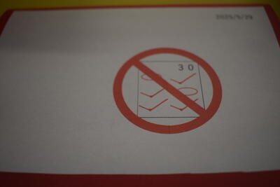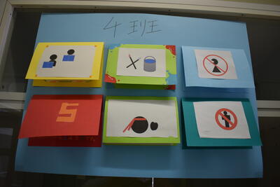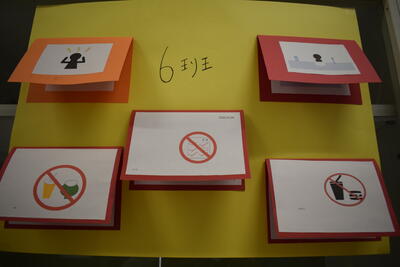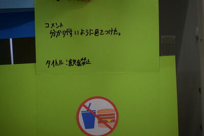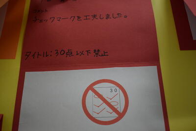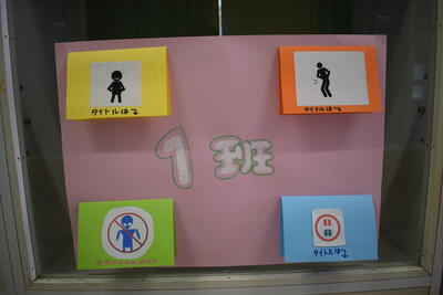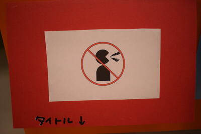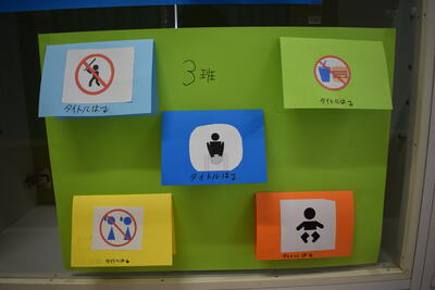 「ピクトグラムクイズ ~何を表すマーク?~」です。生徒が自分でピクトグラム(マーク)を考えたようです。