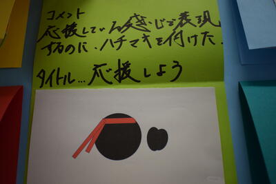 美術室の前に、2年生が美術の時間に作成した作品が掲示してありました。