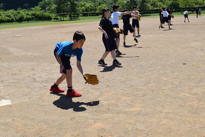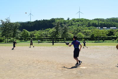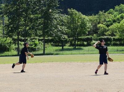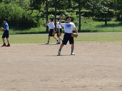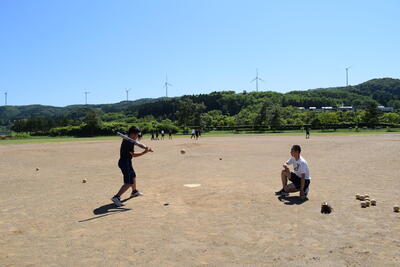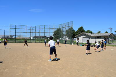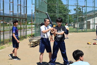 野球部の生徒が積極的にバッティングを教えたり、ノックを打ったりしていました。